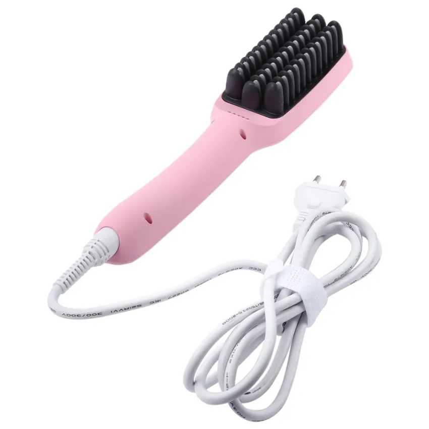 Electric Smooth Ceramic Hair Straightener Comb Flat Iron LCD Straight Brush - EU PLUG (Pink) - Intl คลิกที่รูปภาพเพื่อชมรายละเอียดสินค้า