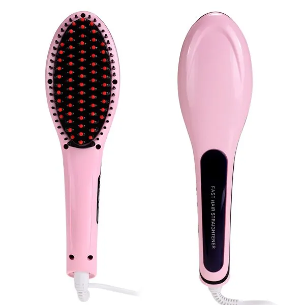 เครื่องหนีบผมราคาถูก, Cyber Pink Digital Anti Static Hair Straightener Comb Heating Detangling Hair Brush US Plug (Pink) ให้ผมเรียบตรงสวย ไม่ชี้ฟูด้วย ที่หนีบผม เครื่องรีดผมตรง ที่สามารถปรับระดับความร้อนได้ตามต้องการ พร้อมฟังก์ชั่นการล็อคอุณหภูมิ ด้วยเทคโนโลยีที่ทันสมัย ผลิตด้วยซิลค์และเซรามิคเคลือบ ที่หนีบผมถูกออกแบบให้ถนอมเส้นผม มีความปลอดภัยสูง มีคุณภาพ ให้ผมตรงเงางามเป็นประกาย จัดเซ็ตทรงได้ง่าย จุดประกายความงามแบบที่คุณไม่เคยสัมผัส ที่หนีบผมต่าง ๆ ที่ว่าหน้าตาเหมือน ๆ กัน ความจริงแล้วก็ยังแยกแยะออกไปได้เป็น 4 ประเภท ตามแต่วัสดุที่ใช้ อันได้แก่ ทัวร์มาลีน เซรามิก ไทเทเนียม และแซฟไฟร์ ประเภทที่นิยมกันมากที่สุดก็เห็นจะเป็นวัสดุสองตัวแรก โดยเซรามิกมีคุณสมบัติในการส่งผ่านความร้อนไปยังเส้นผมได้ดี เมื่อหนีบผมจึงเรียบได้ไว ประหยัดทั้งเวลาและไม่ต้องใช้ความร้อนสูงมาก ส่วนที่หนีบผมที่ทำมาจากทัวร์มาลีน ก็มีคุณสมบัติในการสร้างประจุลบเพื่อลดความชี้ฟูของเส้นผม อีกทั้งยังเพิ่มแรงกดยามใช้ที่หนีบผม ทำให้ผมที่หนีบแล้วตรงสลวยเป็นพิเศษนั่นเอง การเลือกใช้ขนาดของที่หนีบผมที่เหมาะสม จะช่วยให้การหนีบผมของคุณง่ายขึ้น และลดโอกาสที่จะทำร้ายเส้นผมตัวเอง ที่หนีบผมขนาดเล็กที่มีแถบแผ่นให้ความร้อนกว้าง 1/2-1 นิ้ว เหมาะกับคนผมสั้น ใช้ได้ทั้งผมเส้นเล็กและเส้นใหญ่ ส่วนที่หนีบที่มีขนาด 1 1/2-2 นิ้ว ก็จะเหมาะกับการใช้หนีบผมยาว ๆ ใช้ได้ทั้งผมที่มีเส้นเล็กและเส้นใหญ่เช่นกันค่ะ เราแนะนำ