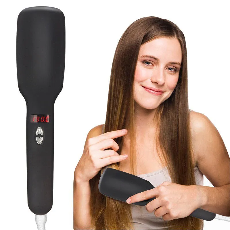 100-240V Original Escova Alisadora Fast Electric Smooth Brush Ceramic Hair Straightener Comb Flat Iron With LCD Straight Brush(Black) - Intl คลิกที่รูปภาพเพื่อชมรายละเอียดสินค้า